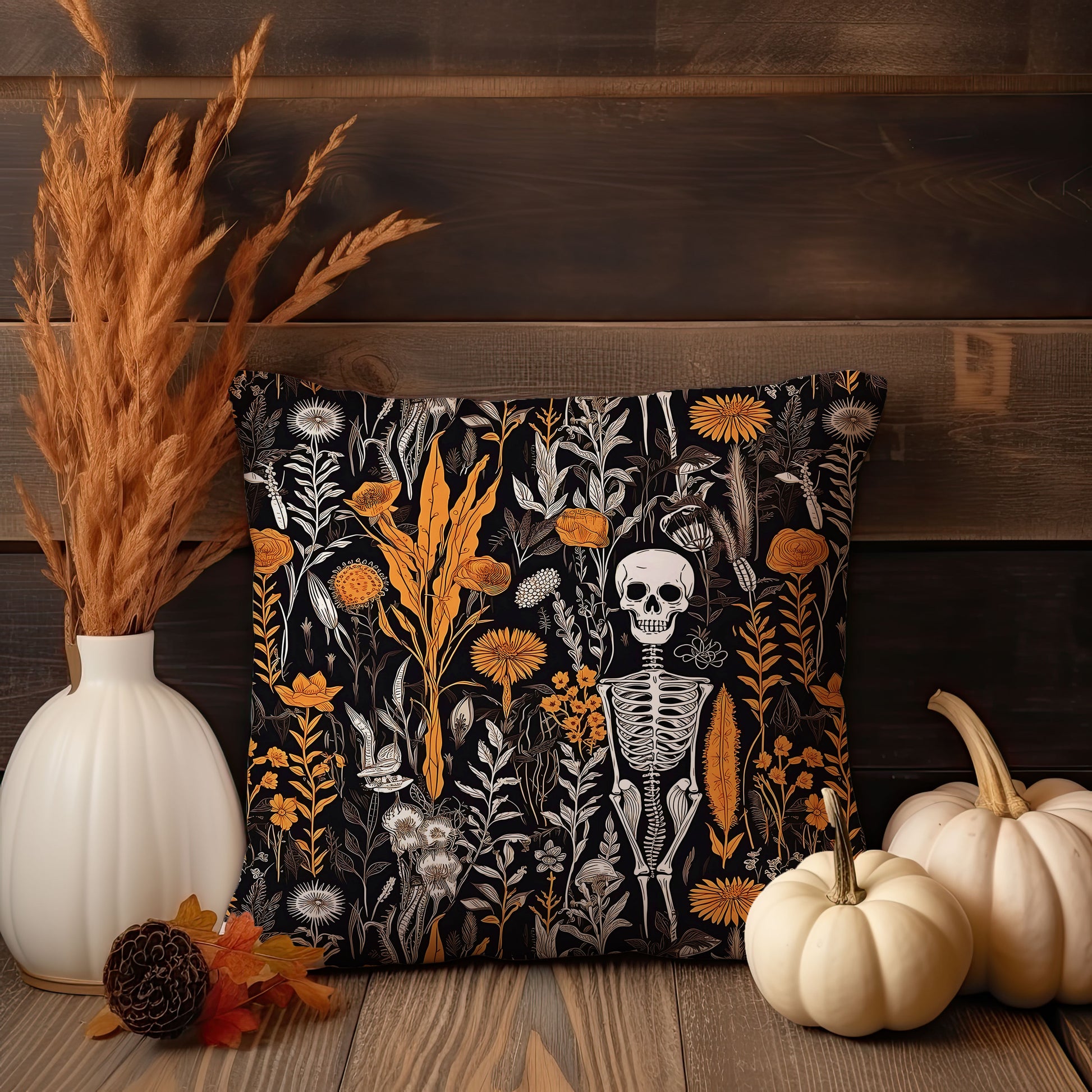 Decorate your home with this spooky Halloween Harvest throw pillow. Quality, soft feel 100% cotton twill fabric gives it its cozy touch. This throw pillow is designed with the pattern on both sides of the pillow and zipper on one side. Our super soft poly inserts are the perfect fluff and form for your pillow!