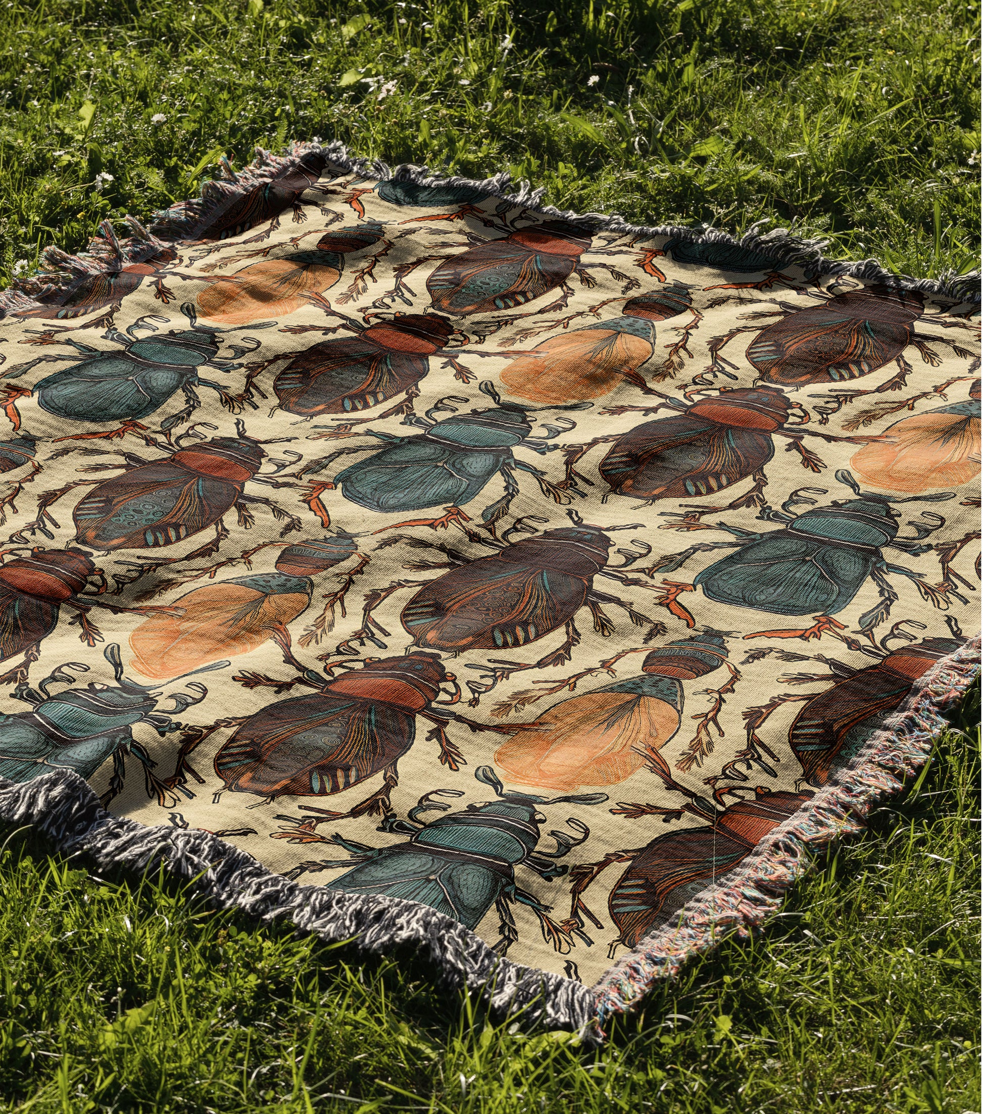 Boho Beetle Woven Throw Blanket